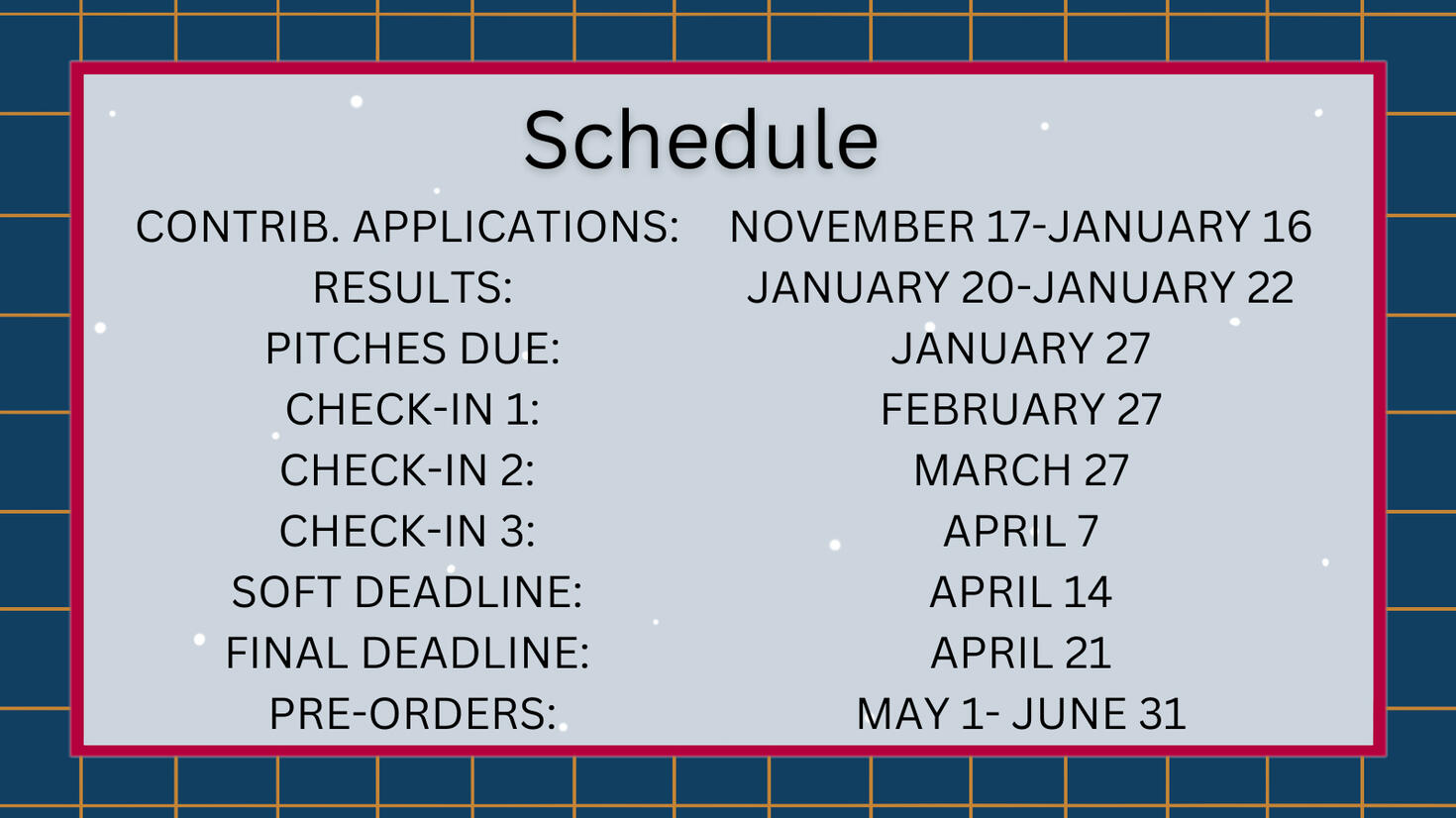 Artists will create one single-page illustration, a multipage comic, or double-page spread.ApplicationsArtists will be asked to submit three samples showcasing their best work.